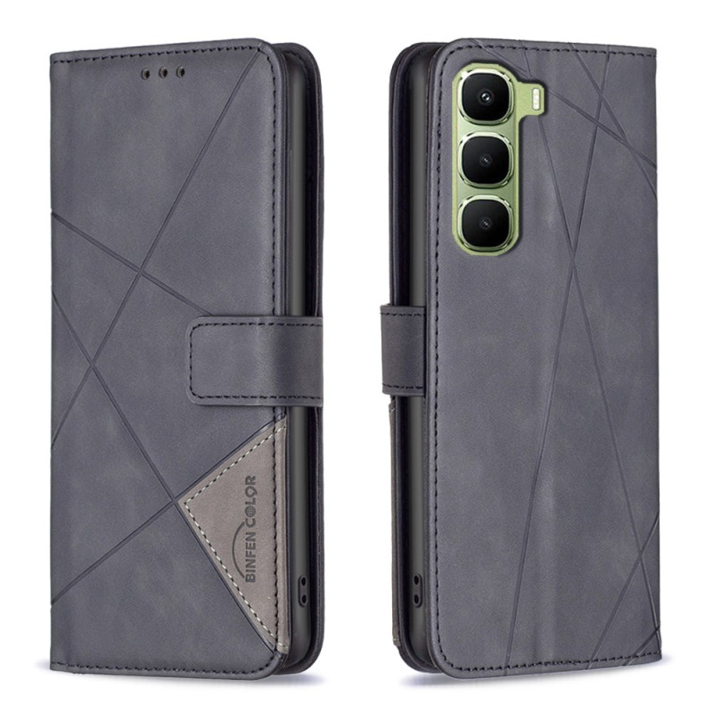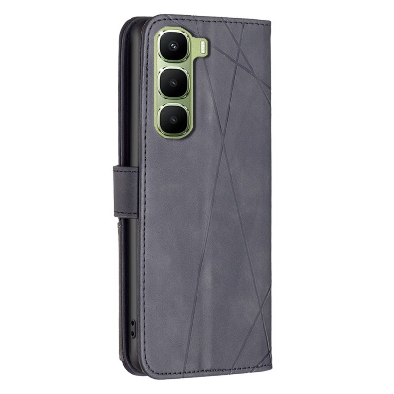 Descubra esta elegante capa tipo carteira para o Infinix Hot 60 Pro 4G. Design geométrico moderno, 3 ranhuras para cartões, compartimento para bilhetes e suporte dobrável integrado. Proteção completa contra choques e riscos do dia a dia.