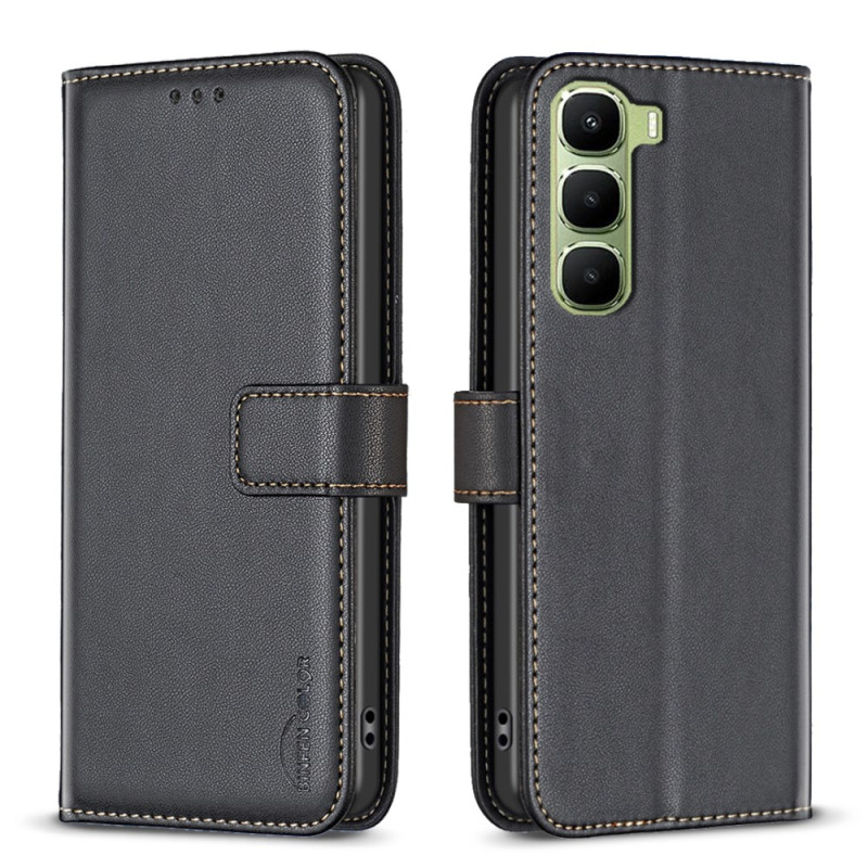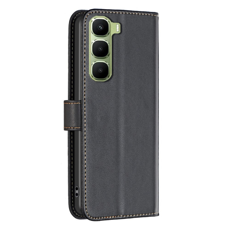 Capa multifunções para Infinix Hot 60 Pro 4G com suporte ajustável, fecho magnético seguro e várias ranhuras para cartões. Proteção total contra choques e riscos com rebordos elevados para o ecrã e a câmara.
