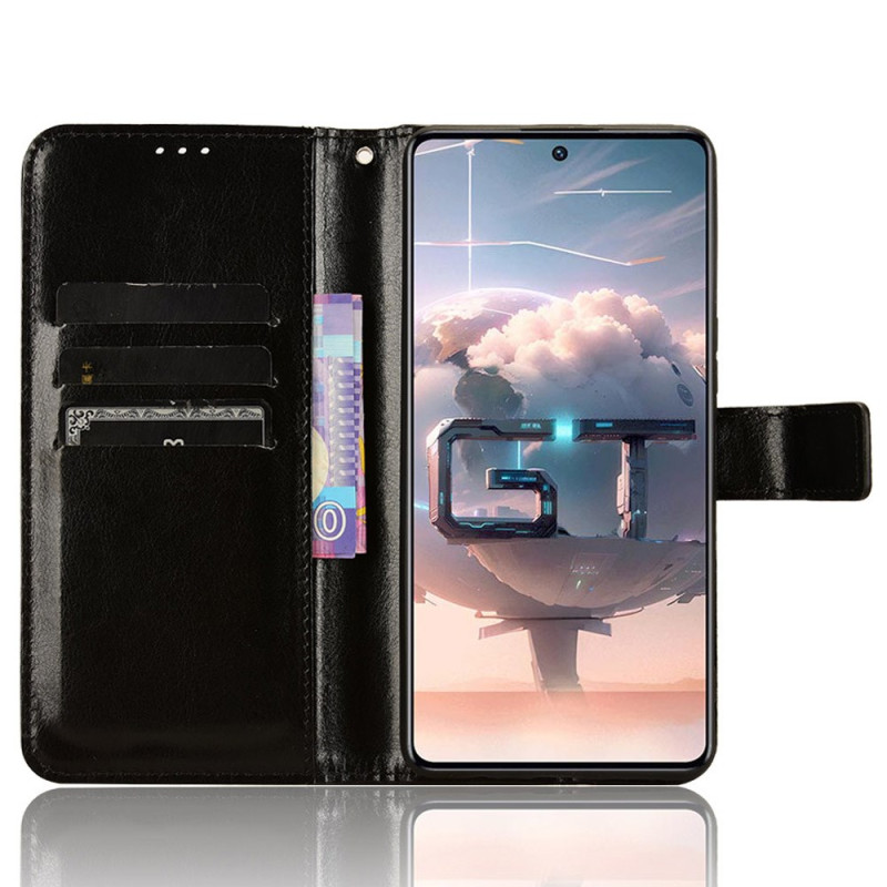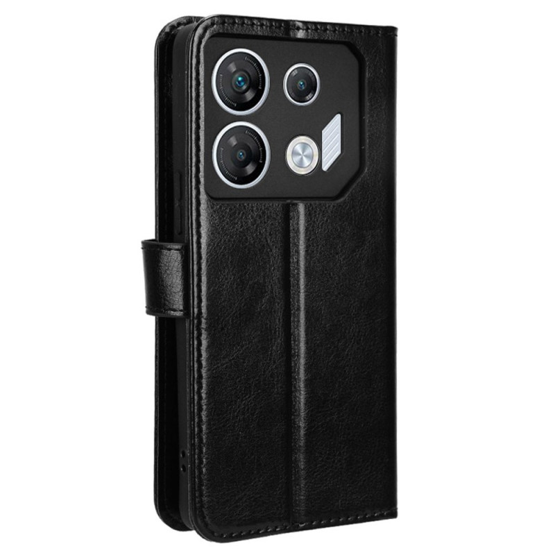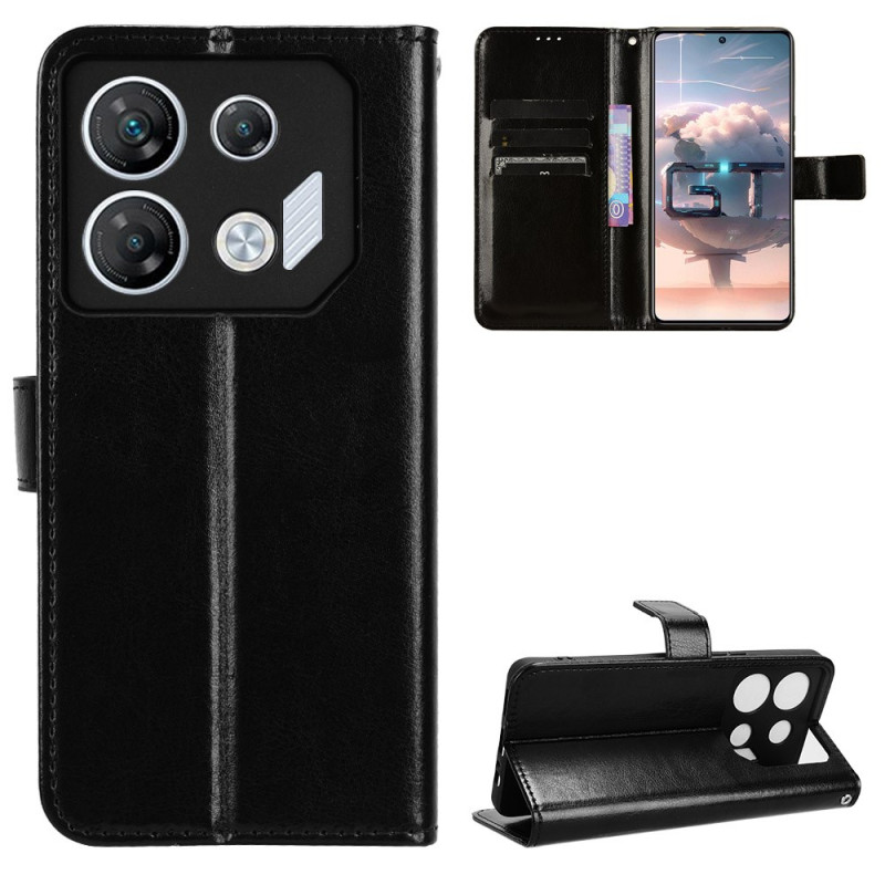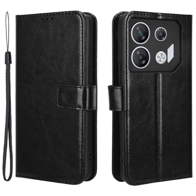 Capa elegante e funcional para o Infinix GT 10 Pro 5G. Com 3 ranhuras para cartões, um compartimento para notas e um prático suporte para mãos livres. Proteção completa contra os choques do dia a dia.