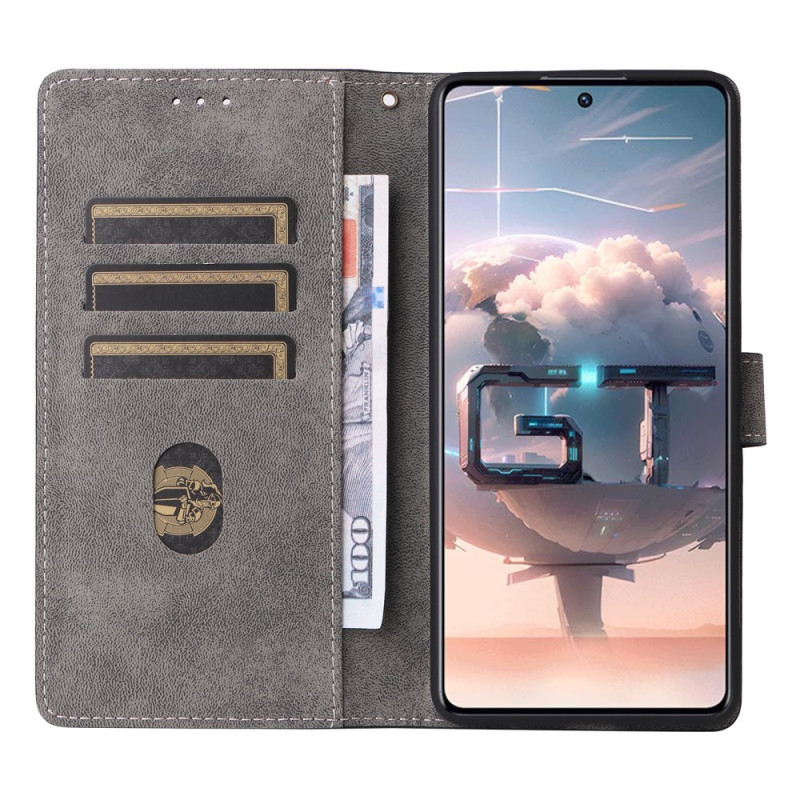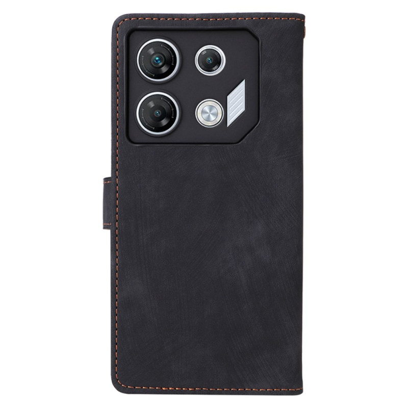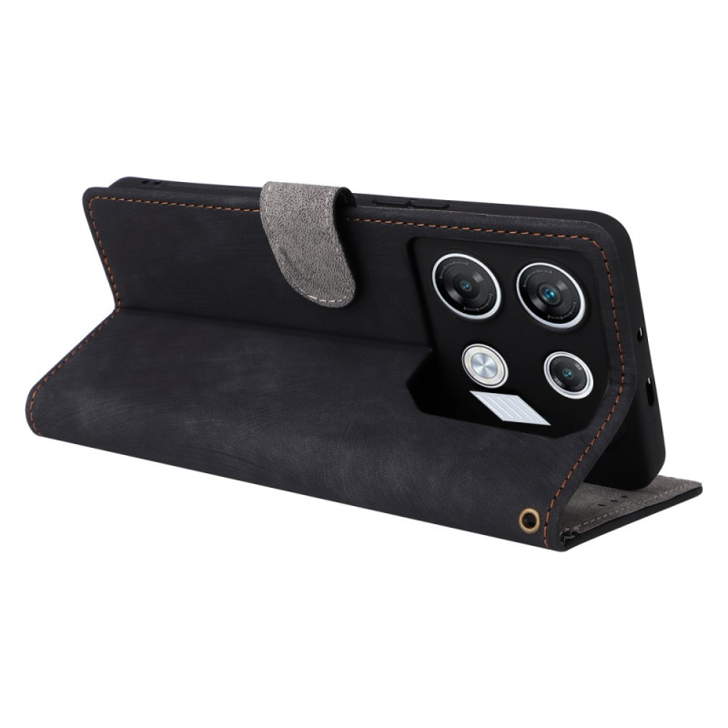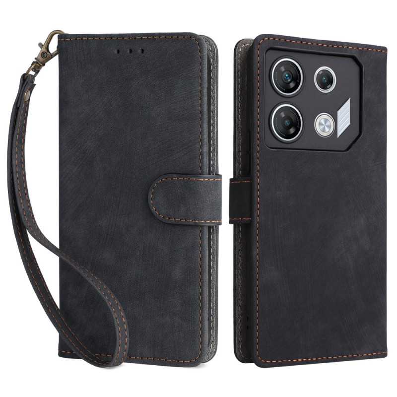 Capa de carteira elegante para o Infinix GT 10 Pro 5G com tecnologia de bloqueio RFID. Inclui 3 ranhuras para cartões, suporte mãos-livres e fecho magnético seguro. Inclui uma prática alça de mão para facilitar o transporte.