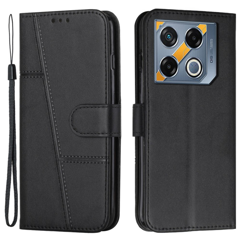 Capa elegante em pele PU para Infinix GT 20 Pro 5G. Com 2 ranhuras para cartões, 1 suporte para fotografias e 1 compartimento para dinheiro. Função de suporte integrada para utilização em mãos-livres. Fecho magnético seguro e correia de mão incluída.
