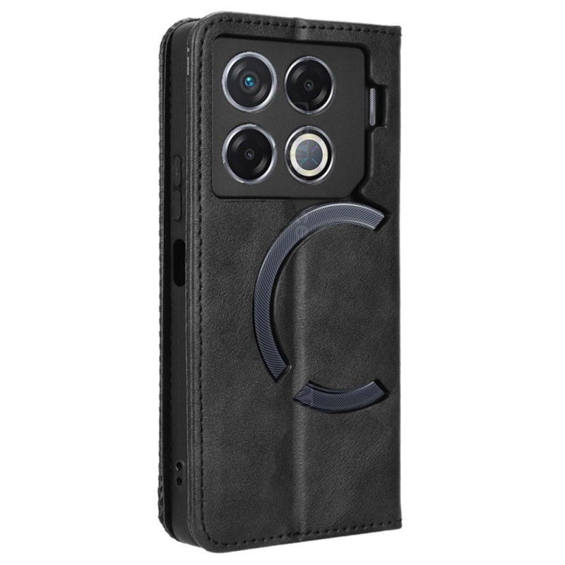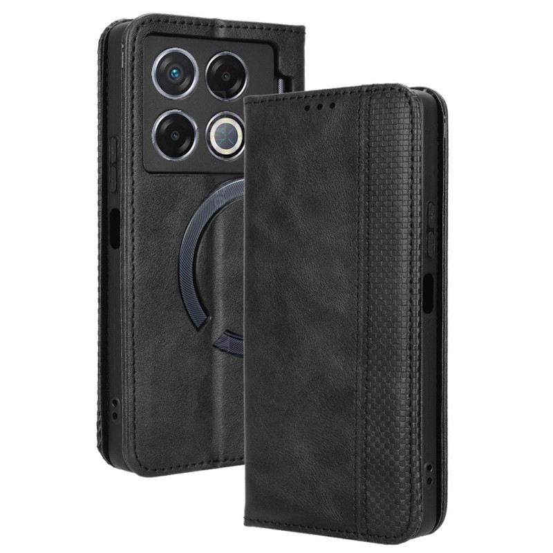 Proteja o seu Infinix GT 20 Pro 5G X6871 em grande estilo com esta capa fólio retro em pele PU. Com um fecho magnético automático, várias ranhuras para cartões, um suporte ajustável e um rebordo em mosaico gravado exclusivo.