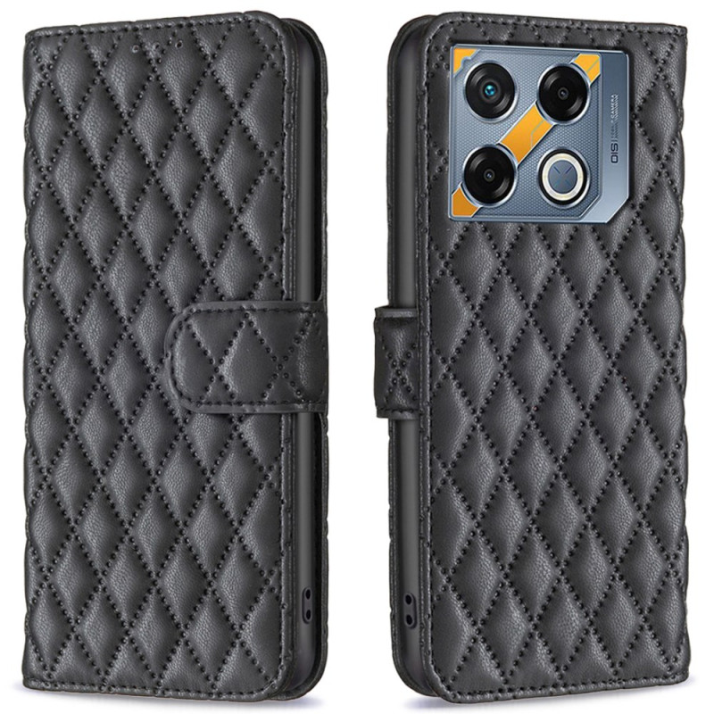 Proteja o seu Infinix GT 20 Pro 5G com estilo com esta sofisticada capa de carteira. Com um design elegante em grelha de diamante, combina proteção total e funcionalidade com as suas 3 ranhuras para cartões, compartimento para notas e suporte ajustável.