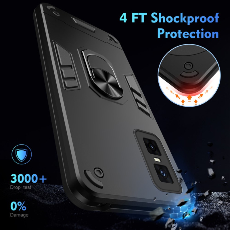 Proteja o seu Infinix GT 30 Pro 5G com esta capa robusta com um anel de suporte rotativo e proteção anti-queda. Compatível com suportes para automóvel, oferece acesso total às funções do seu telemóvel, protegendo o ecrã e a câmara contra riscos.