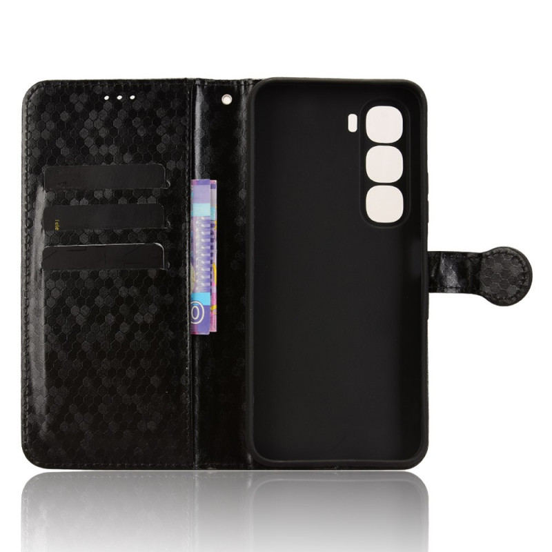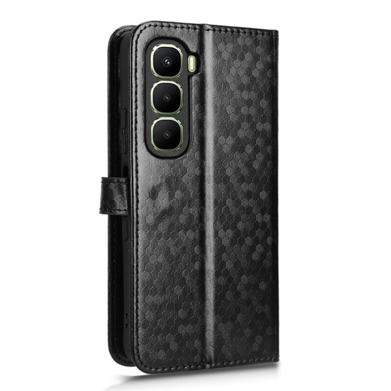 Proteja o seu Infinix Hot 60i 4G / Hot 60 5G com estilo com esta elegante capa para carteira. Com um elegante padrão de bolinhas, ranhuras para cartões integradas e uma prática alça de mão, combina proteção com funcionalidade diária.