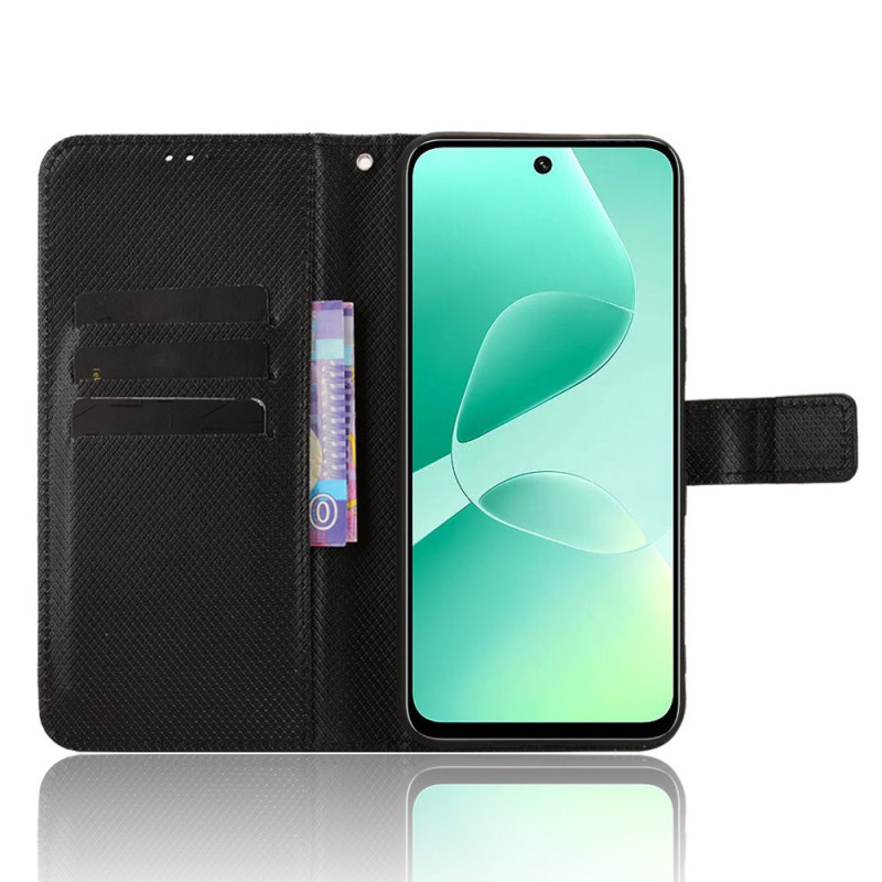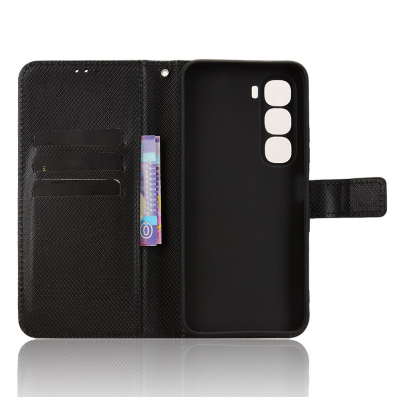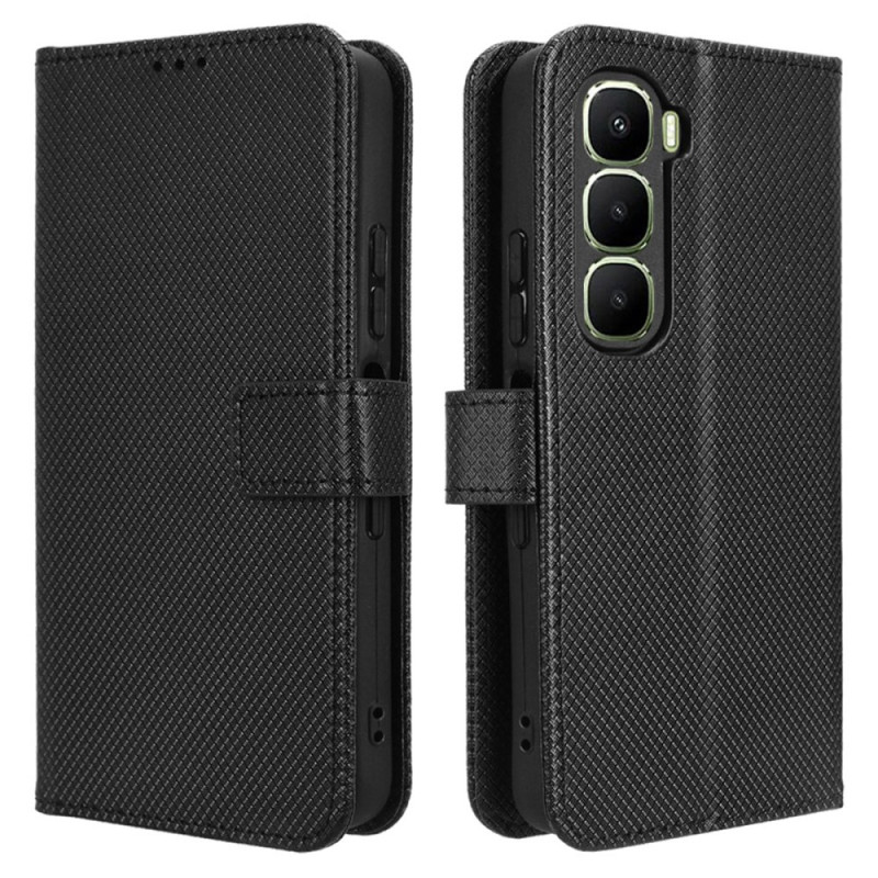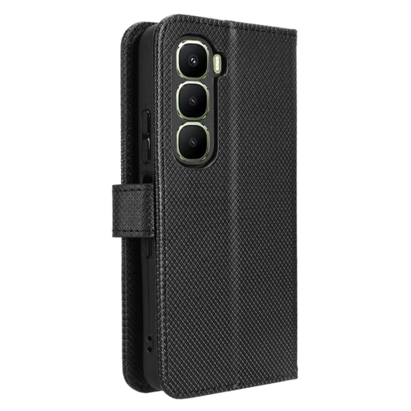 Proteja o seu Infinix Hot 60 5G / Hot 60i 4G com estilo com esta capa de couro PU com textura de diamante. Com ranhuras para cartões, um suporte dobrável e uma prática correia de pulso, combina estilo e funcionalidade para uma proteção diária completa.