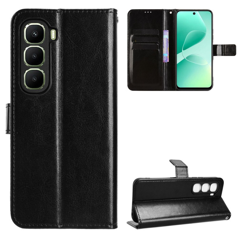 Descubra este elegante capa em pele PU com efeito Crazy Horse para o seu Infinix Hot 60 5G / Hot 60i 4G. Com 3 ranhuras para cartões, um fecho magnético seguro e uma prática alça de mão, combina estilo e funcionalidade.