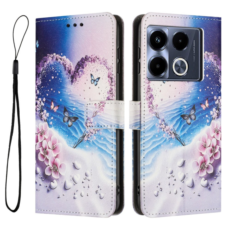 Proteja o seu Infinix Note 40 Pro 5G / 4G / 40 Pro Plus 5G com estilo com esta elegante capa de carteira com um motivo de borboleta em forma de coração. Com ranhuras para cartões, um suporte dobrável e um prático fecho magnético, combina funcionalidade com elegância.