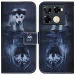 Proteja o seu Infinix Note 40 Pro 5G / 40 Pro Plus 5G com estilo com esta capa de carteira com um motivo único de cão e lobo. Com compartimentos para cartões e dinheiro, um prático suporte dobrável e um fecho magnético seguro.