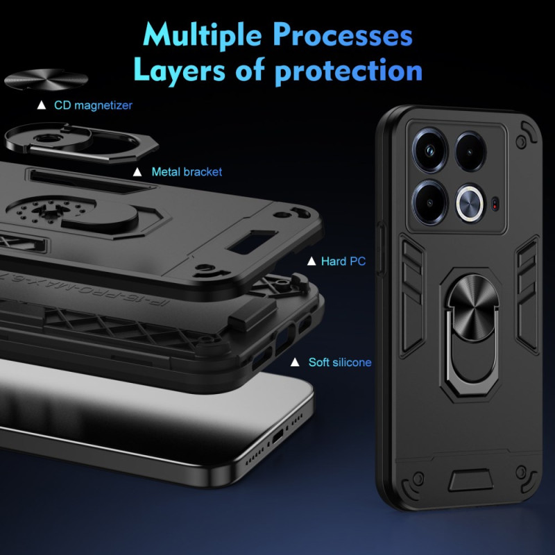 Proteja o seu Infinix Note 40 com esta capa robusta que inclui um suporte rotativo ajustável e compatibilidade com o suporte para automóvel. Construção durável em PC e TPU, bordos elevados para proteger o ecrã e a câmara, recortes precisos.