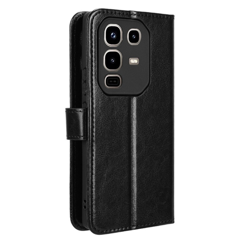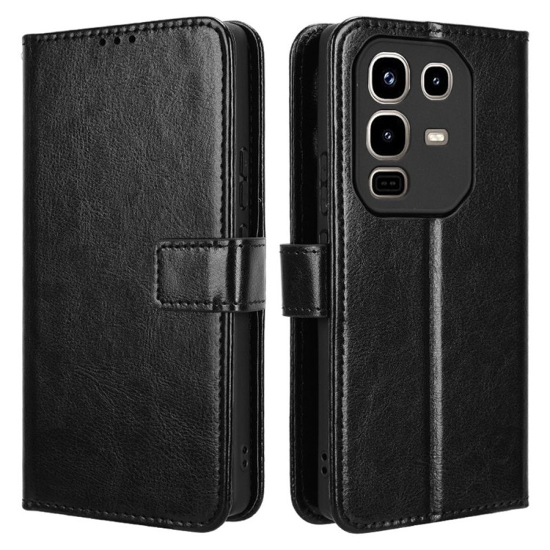 Descubra o nosso elegante capa em pele PU com textura Crazy Horse para o Infinix Note 50 Pro 4G / Note 50 4G. Com 3 ranhuras para cartões, um compartimento para notas e um fecho magnético seguro.