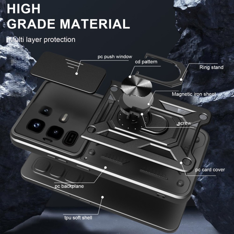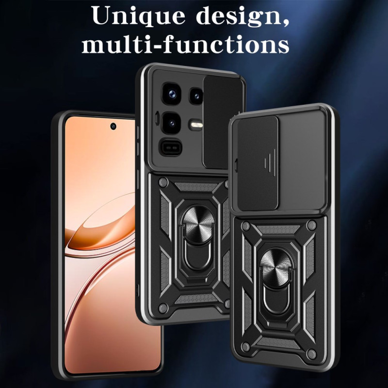 Proteja o seu Infinix Note 50 Pro 4G com esta capa multifunções que inclui uma proteção deslizante para a câmara, um suporte rotativo de 360° e uma placa magnética integrada. Design robusto que oferece proteção contra impactos de nível militar.