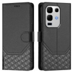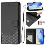 Capa de carteira elegante para o Infinix Note 50S 5G com padrão de favo de mel gravado. Com proteção RFID, 3 ranhuras para cartões, suporte mãos-livres e uma prática correia de mão para uma segurança óptima.