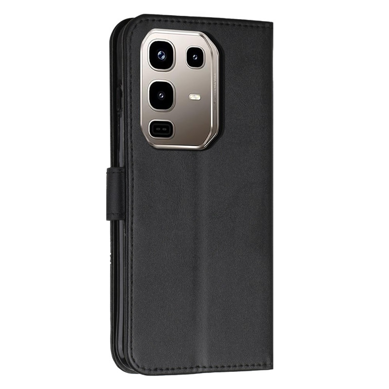 Capa elegante para a Infinix Note 50X 5G com suporte integrado. Inclui 2 ranhuras para cartões, 1 bolso para fotografias e 1 compartimento para dinheiro. Fecho magnético seguro e alça de mão prática incluída para fácil transporte.