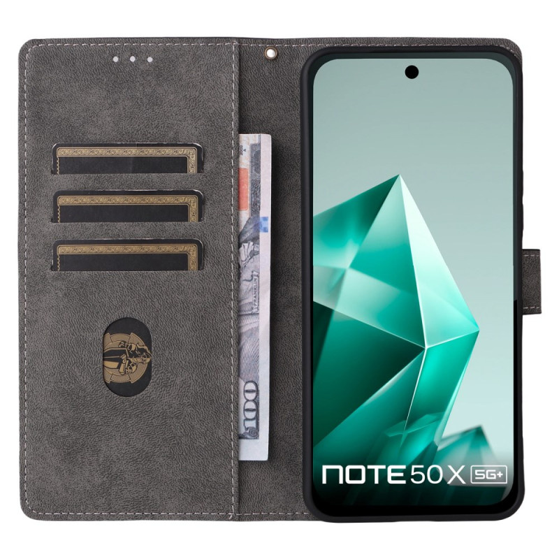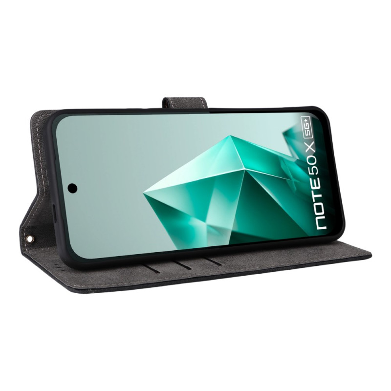 Proteja o seu Infinix Note 50X 5G com este elegante capa em pele PU. Com um sistema de bloqueio RFID, 3 ranhuras para cartões, um suporte dobrável e um fecho magnético seguro.