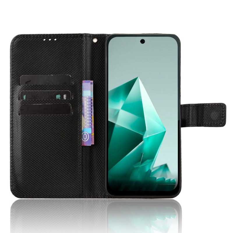 Proteja o seu Infinix Note 50X 5G com estilo com este capa em pele PU com textura de diamante. Com ranhuras para cartões, um bolso para dinheiro e uma prática alça de mão, combina estilo e funcionalidade.