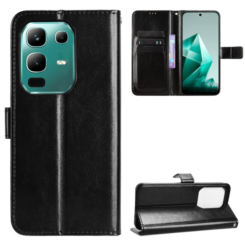 Capa elegante em pele PU texturada para o Infinix Note 50X 5G. Inclui 3 ranhuras para cartões, compartimento para notas, função mãos-livres e fecho magnético seguro. Inclui uma prática alça de mão para facilitar o transporte.