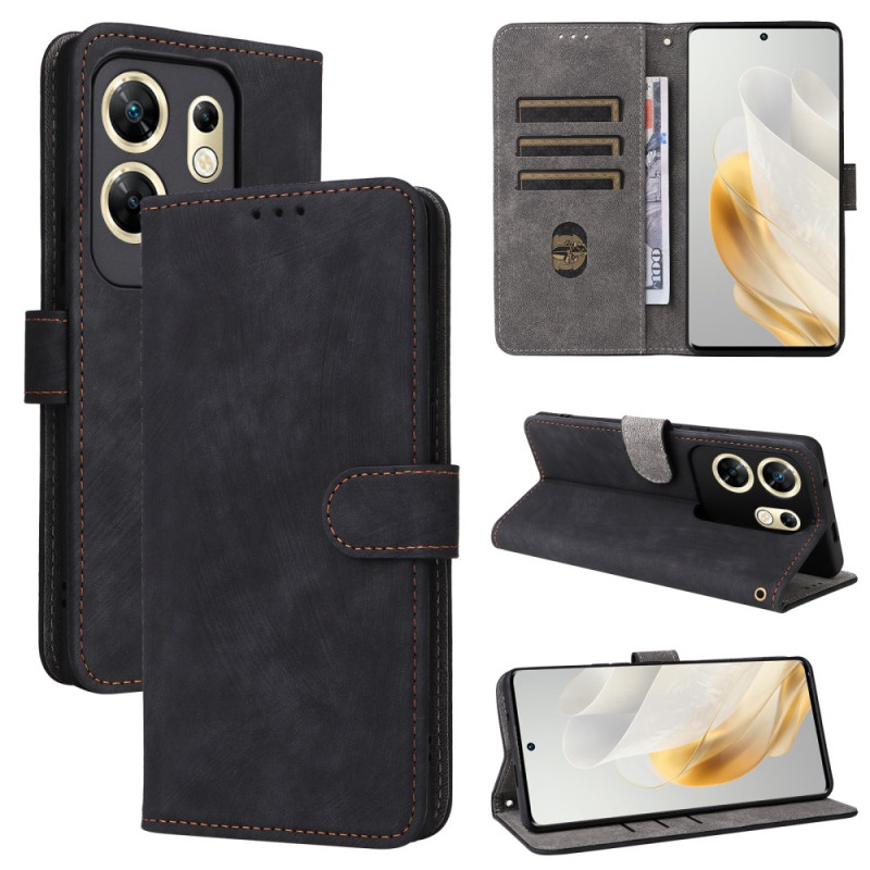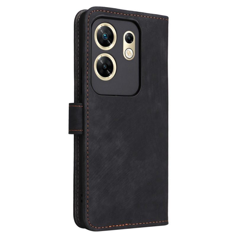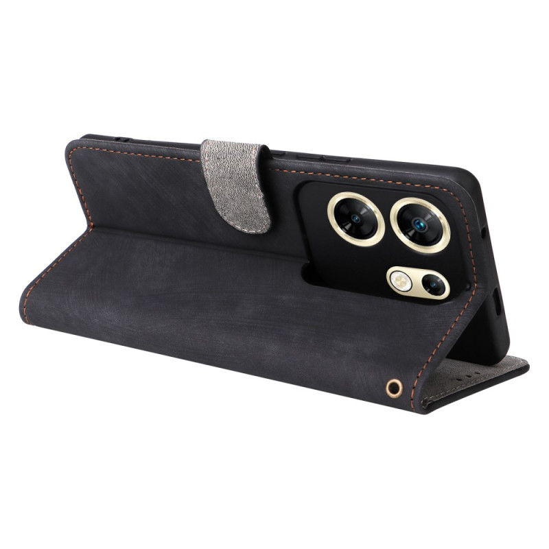 Capa multifunções em pele PU para Infinix Zero 30 4G X6731B com proteção RFID integrada. Design prático de carteira com 3 ranhuras para cartões, capa e alça de mão amovível. Suporte mãos-livres ideal para ver vídeos.