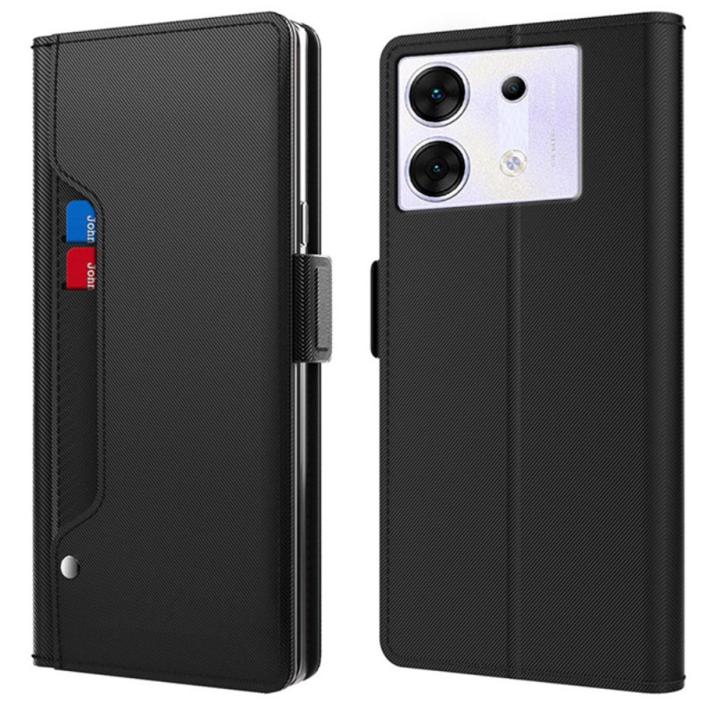 Capa elegante para o Infinix Zero 30 5G com espelho integrado, ranhuras para cartões e suporte ajustável. Proteção completa com fecho magnético seguro e rebordos elevados para proteger a câmara. Design sofisticado perfeito para um estilo de vida ativo.