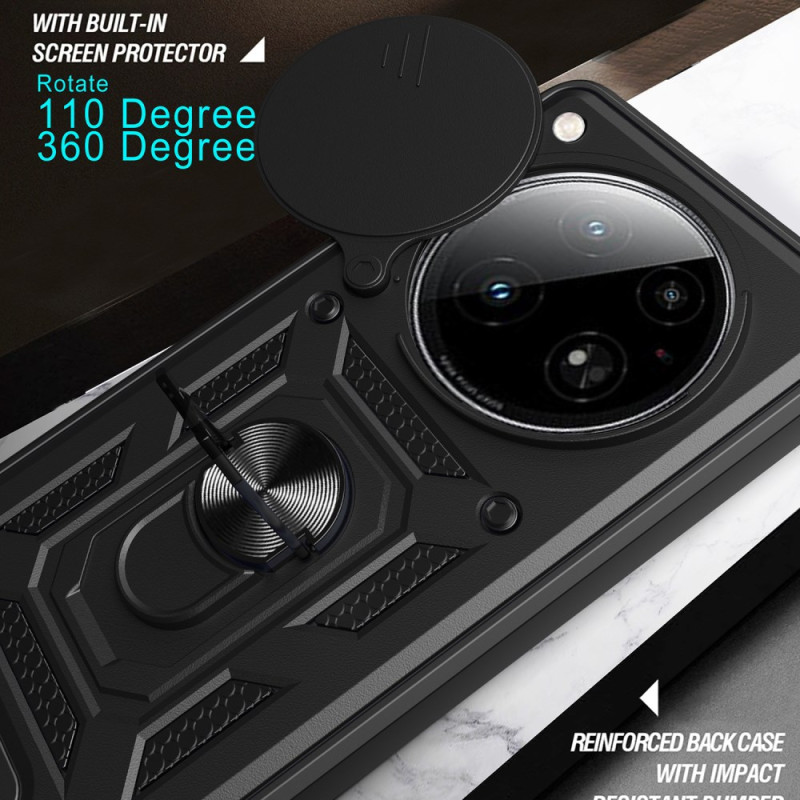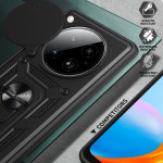 Proteja o seu Infinix Zero 40 5G com esta capa inovadora que inclui uma tampa deslizante para a câmara, um suporte rotativo integrado e uma proteção reforçada de nível militar. Compatível com suportes magnéticos para automóvel.