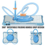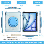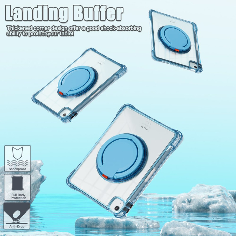 Descubra a nossa versátil capa para o iPad Air 11 (2025) (2024)/Air (2022) (2020)/ Pro 11 (2022) (2021) (2020) (2018), com uma pega rotativa de 360°, proteção total do corpo, cantos que absorvem os choques, suporte ajustável, parte posterior em acrílico transparente e alça de ombro em nylon ajustável.