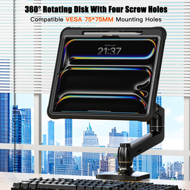 Descubra a nossa capa robusta e versátil para o iPad Pro 13. Com compatibilidade VESA, proteção de 360°, absorção de choques melhorada e um suporte integrado, oferece uma proteção completa e uma funcionalidade óptima. Desfrute de um design à prova de pó e de uma construção multicamada duradoura para uma utilização quotidiana sem preocupações.