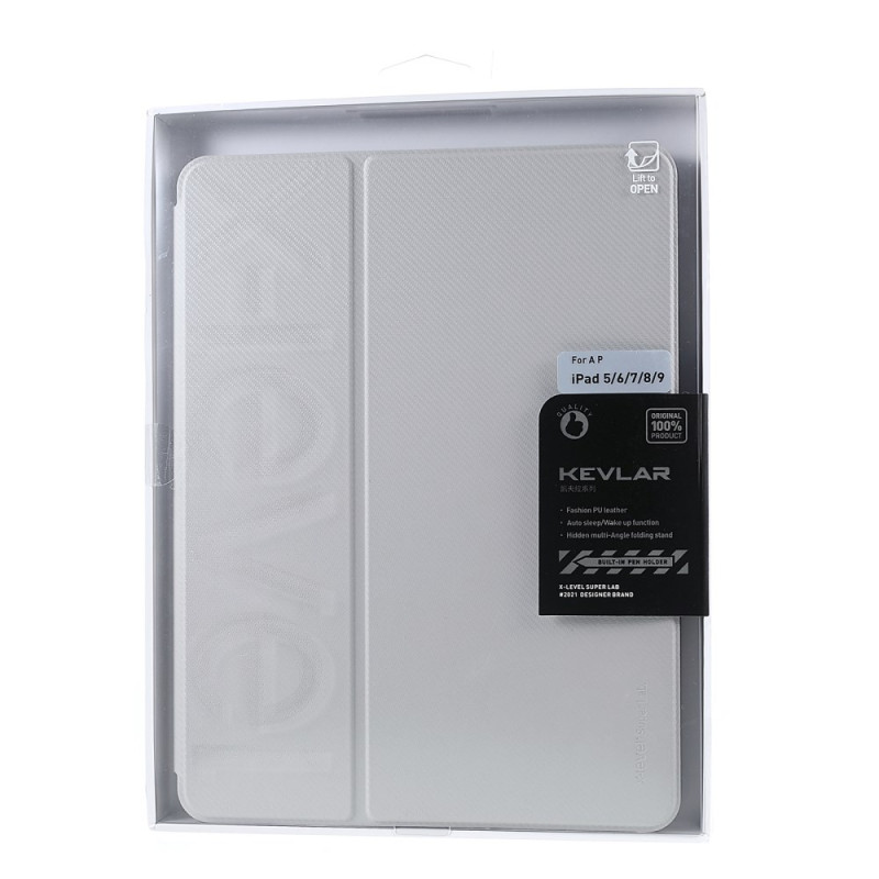 Protégez votre iPad( 9.7 pouces) / iPad Pro 9.7 pouces / iPad Air / iPad Air 2 avec style grâce à cet étui intelligent X-LEVEL Kevlar Series. Son design raffiné à texture fibre de carbone allie élégance et robustesse. Doté d'un support pliable et d'un porte-stylet intégré, il offre une protection complète...
