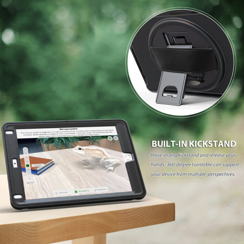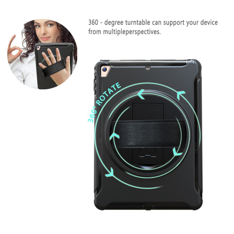 Protégez votre iPad( 9.7 pouces) / iPad Pro 9.7 pouces / iPad Air / iPad Air 2 avec cette coque robuste tout-en-un. Son support rotatif 360° offre une flexibilité optimale en mode portrait ou paysage. La sangle ajustable assure une prise en main confortable et sécurisée pour tous vos déplacements.