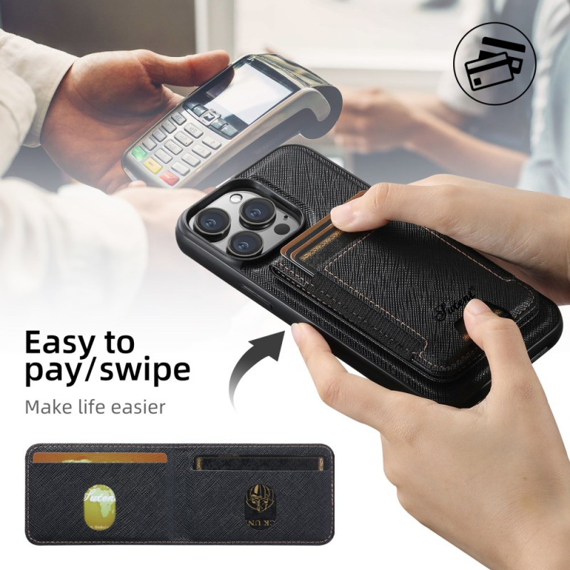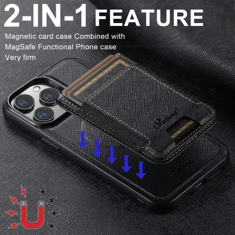 Découvrez la coque SUTENI H17 pour iPhone 12 / 12 Pro, alliant style et fonctionnalité. Fabriquée en cuir PU de qualité et TPU souple, elle offre une protection durable avec un design texturé élégant. Son porte-cartes détachable magnétique permet de ranger 3-4 cartes et sert de support pour une utilisation mains libres. Compatible avec la charge sans fil MagSafe et les supports de voiture magnétiques.
