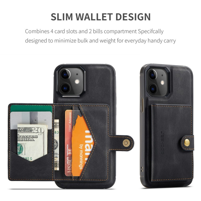 Découvrez la coque JEEHOOD J01 pour iPhone 12 / 12 Pro, alliant fonctionnalité et style. Cette coque en cuir innovante offre une protection robuste, un porte-cartes magnétique détachable et une compatibilité MagSafe. Profitez d'un design 2-en-1 pratique avec multiples rangements pour cartes, fonction support intégrée et protection renforcée de la caméra.