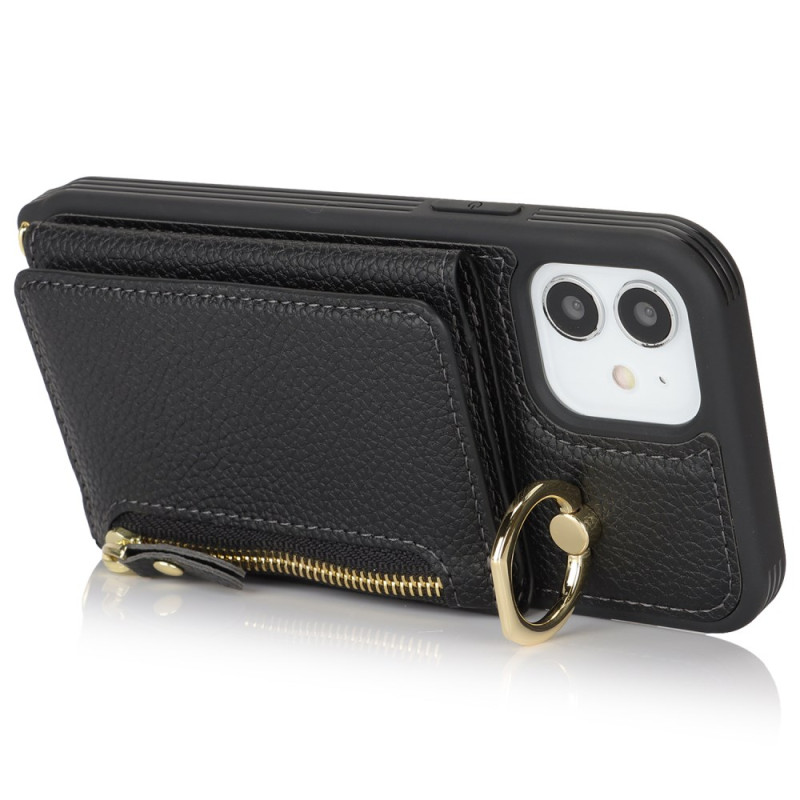 Découvrez notre coque élégante et fonctionnelle pour iPhone 12 / 12 Pro. Fabriquée en cuir PU texturé et TPU, elle offre une protection durable et un look sophistiqué. Avec sa poche zippée, ses emplacements pour cartes et sa dragonne, elle allie praticité et style. Le support anneau intégré permet une utilisation mains libres confortable.