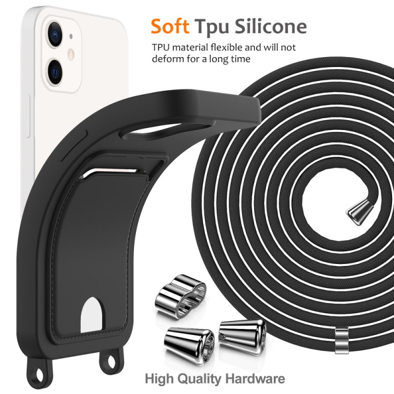 Descubra a nossa inovadora capa para iPhone 12, que combina proteção e praticidade. Fabricada em silicone líquido ultra-suave, é muito agradável na mão e resiste às impressões digitais. Com a ranhura para cartões integrada e a alça ajustável de 160 cm, pode manter o telemóvel e os objectos essenciais sempre ao seu alcance.