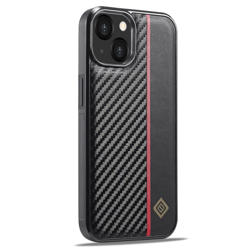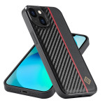 Proteja o seu iPhone 13 mini com estilo com esta capa premium com um design elegante em fibra de carbono. A sua construção em duas camadas oferece uma absorção de choques superior, enquanto a distintiva risca vermelha dá um toque moderno e requintado.