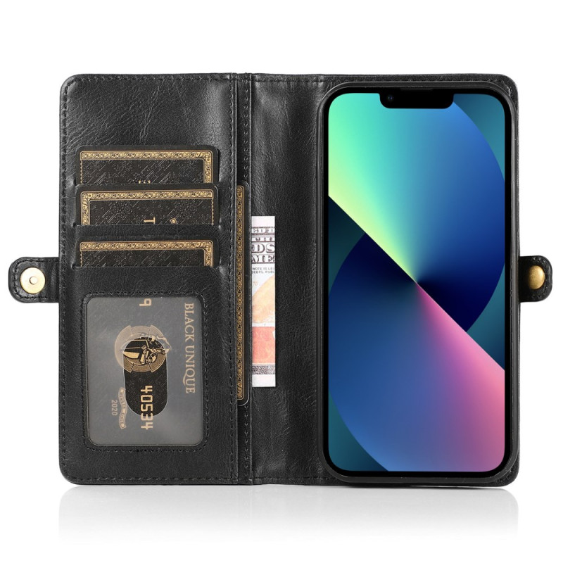 Proteja o seu iPhone 13 mini com estilo com esta capa de carteira amovível 2 em 1. O seu engenhoso design magnético combina uma capa traseira fina com uma prática carteira com aba com ranhuras para cartões e fecho magnético.