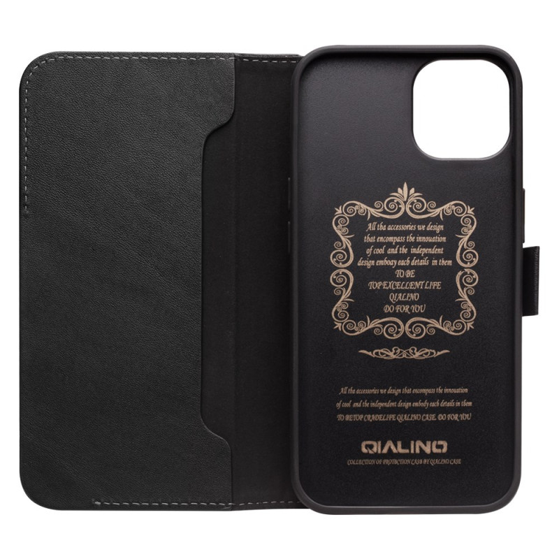 Capa elegante e protetora para carteira para iPhone 13 Mini. Design sofisticado com fecho magnético duplo, função de suporte integrada e ranhuras para cartões. Proteção ideal para o seu smartphone contra choques e riscos.