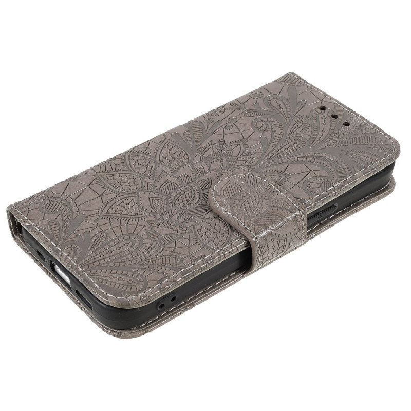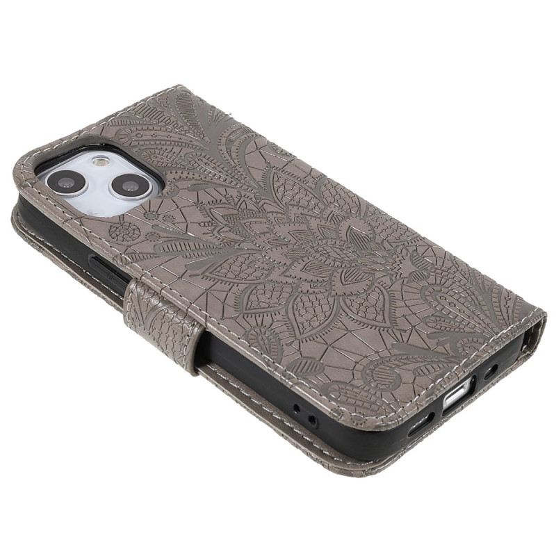Descubra esta elegante capa para carteira com aba com um motivo floral em renda. Com várias ranhuras para cartões, uma prática função de suporte e uma correia de pulso segura, combina um estilo requintado com uma proteção óptima para o seu iPhone 13 mini.