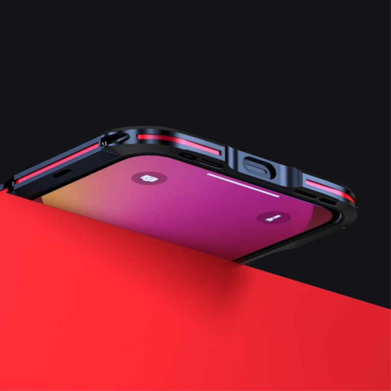 Proteja o seu iPhone 13 mini com este elegante para-choques LUPHIE. O seu design de absorção de choques absorve os impactos, mantendo o seu smartphone fino. Sistema de bloqueio seguro com parafusos e botões laterais protegidos contra o pó.