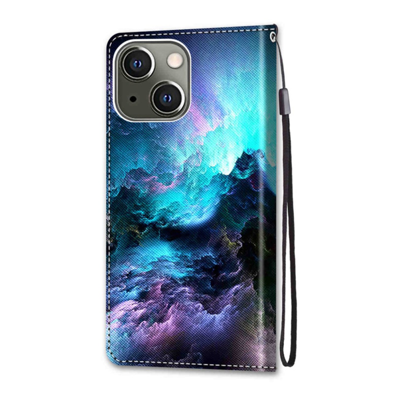 Proteja o seu iPhone 13 Mini com estilo com esta capa de carteira com um cativante motivo de nebulosa. Inclui um prático suporte dobrável, ranhuras para cartões integradas e uma correia de pulso para facilitar o transporte.
