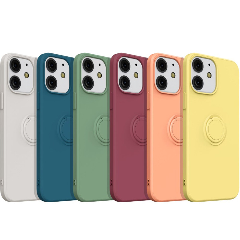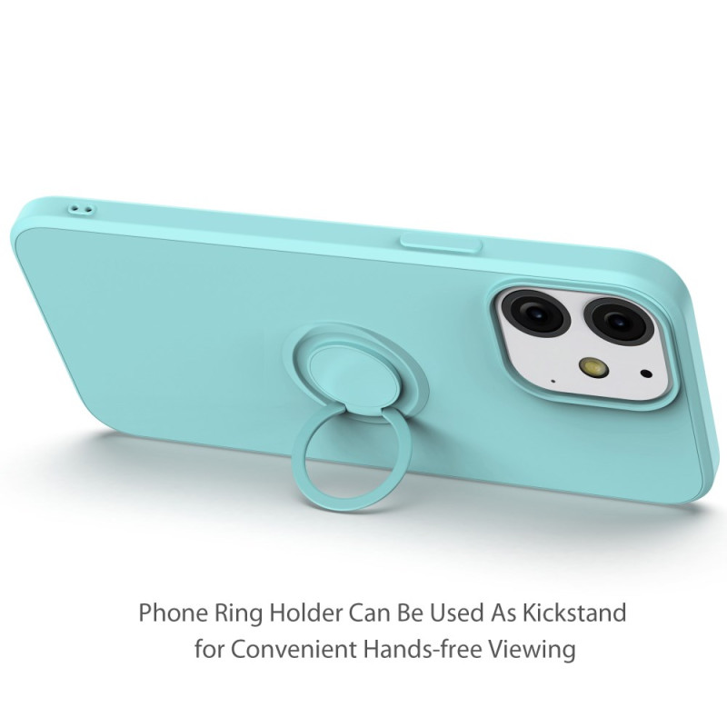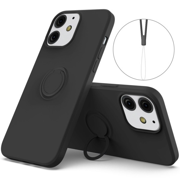 Capa protetora elegante para iPhone 13 Mini com anel rotativo de 360° para apoio e uma prática correia de mão. Design anti-choque reforçado e superfície anti-riscos para uma proteção óptima todos os dias.