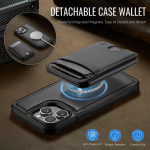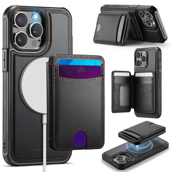Capa multifunções para iPhone 13 Pro Max 6,7" com tecnologia MagSafe. Inclui 6 ranhuras para cartões com proteção RFID, suporte ajustável integrado e construção robusta. O suporte amovível para cartões oferece a máxima flexibilidade.