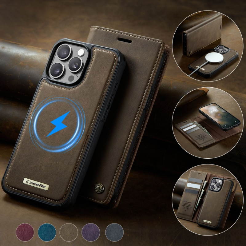 Descubra a capa tipo carteira CASEME para iPhone 13 Pro Max, que combina proteção de primeira qualidade e praticidade. Compatível com MagSafe e tecnologia RFID, design 2 em 1 amovível e suporte integrado para uma experiência quotidiana ideal.