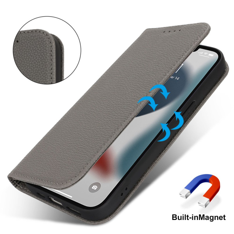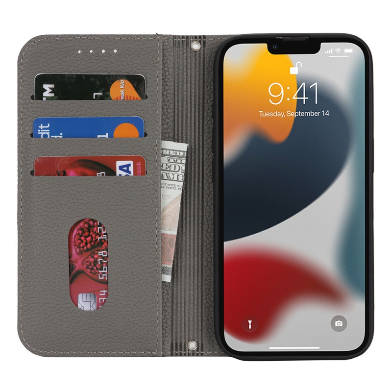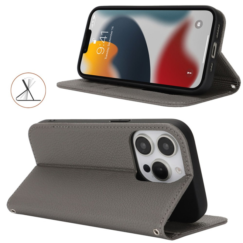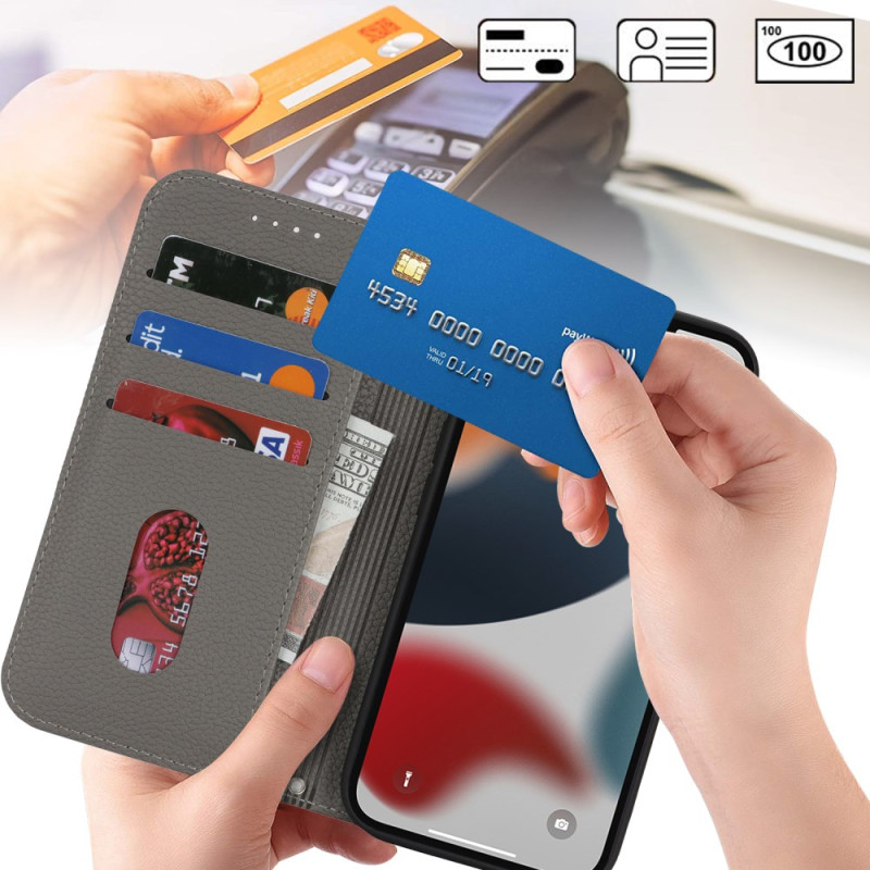 Descubra a nossa elegante capa com aba em pele texturada para o iPhone 13 Pro Max e 12 Pro Max. Com um suporte integrado, 3 ranhuras para cartões e um fecho magnético seguro, esta capa combina estilo e funcionalidade.