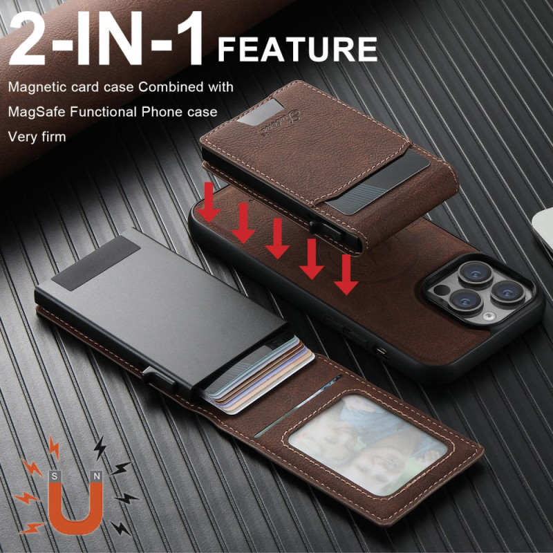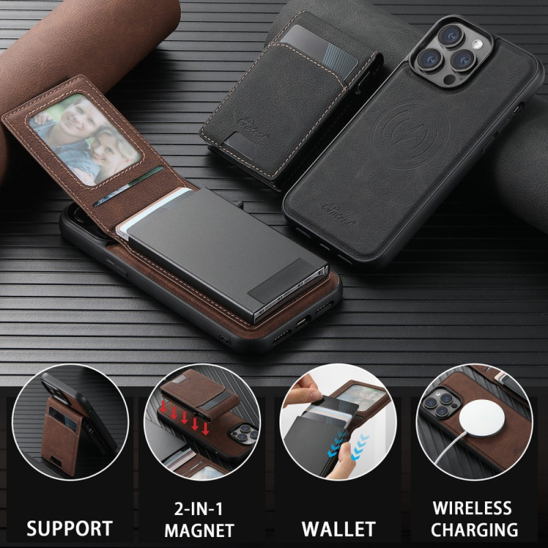Descubra a capa SUTENI para iPhone 13 Pro Max: design 2 em 1 amovível com suporte magnético integrado para 6-8 cartões. Função de suporte ajustável, compatível com carregamento sem fios MagSafe e suporte magnético para automóvel.