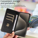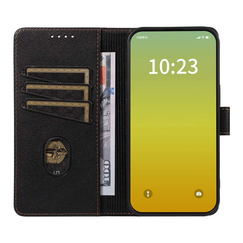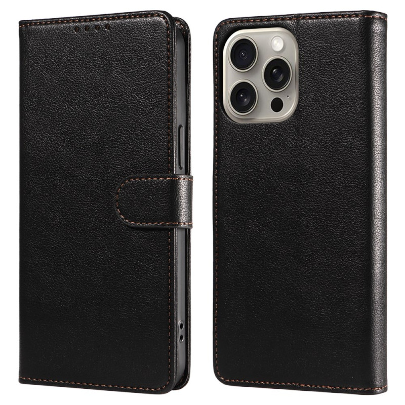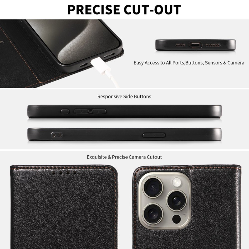 Proteja o seu iPhone 13 Pro Max com estilo com esta capa para carteira em pele PU com textura de lichia. Com 3 ranhuras para cartões com bloqueio RFID, um bolso para dinheiro e suporte mãos-livres. Fecho magnético seguro e proteção total contra choques e riscos.