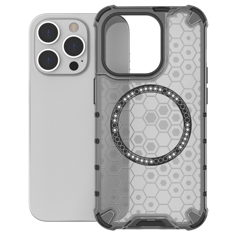 Proteja o seu iPhone 13 Pro Max com esta capa magnética híbrida com um elegante design em forma de favo de mel. Reforçada nos quatro cantos para uma proteção óptima contra choques e quedas. Compatível com todos os acessórios magnéticos.