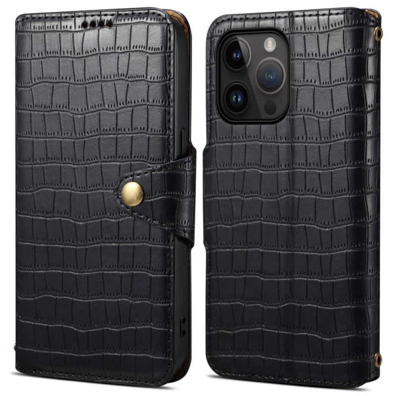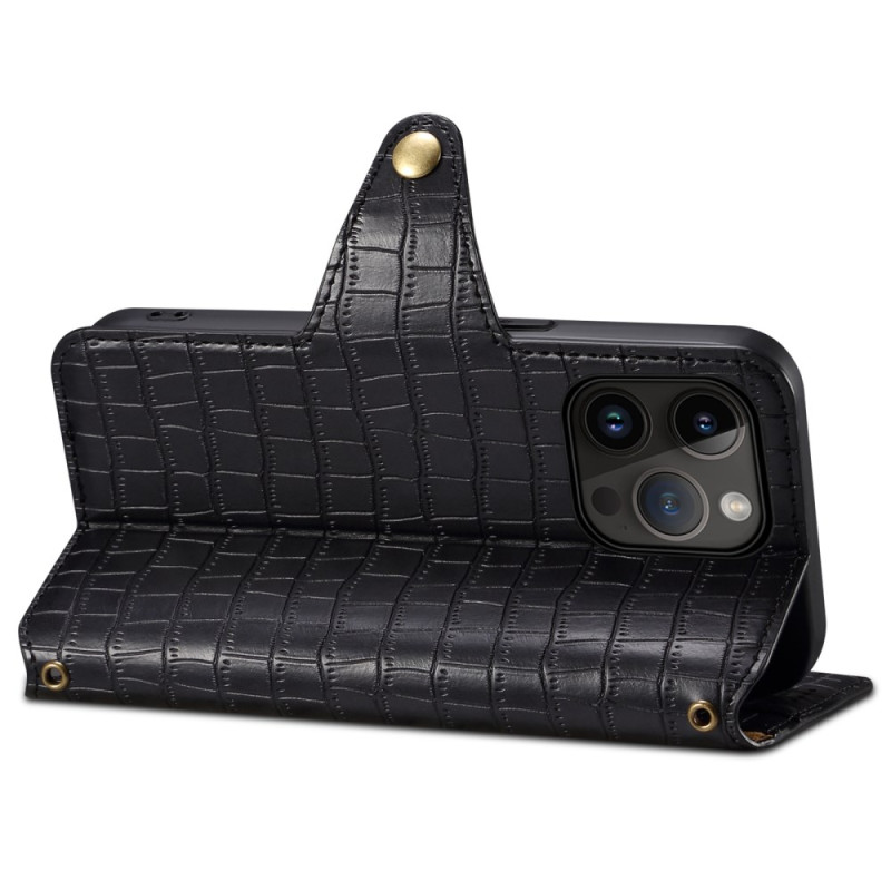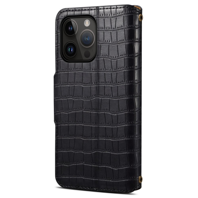 Proteja o seu iPhone 13 Pro Max com estilo com esta capa para carteira em pele PU com textura de crocodilo. Com um suporte dobrável, ranhuras para cartões e um fecho magnético seguro, combina estilo e funcionalidade.