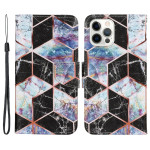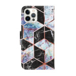 Proteja o seu iPhone 13 Pro Max com estilo com esta capa de carteira multifunções com um sofisticado design geométrico preto. Com ranhuras para cartões integradas e uma prática alça de mão, também serve de suporte para uma utilização mãos-livres.