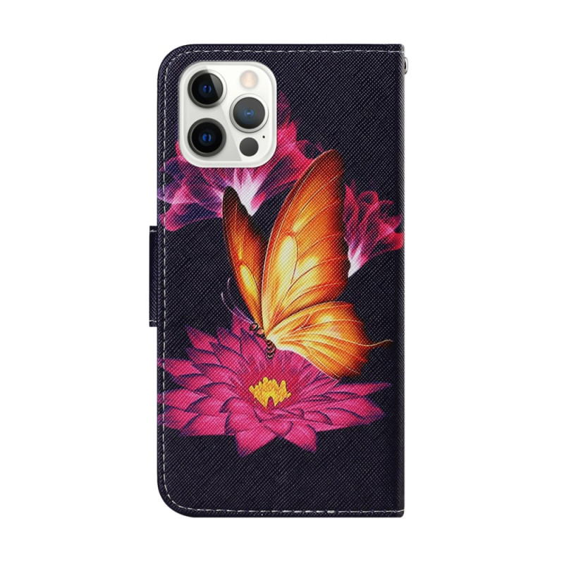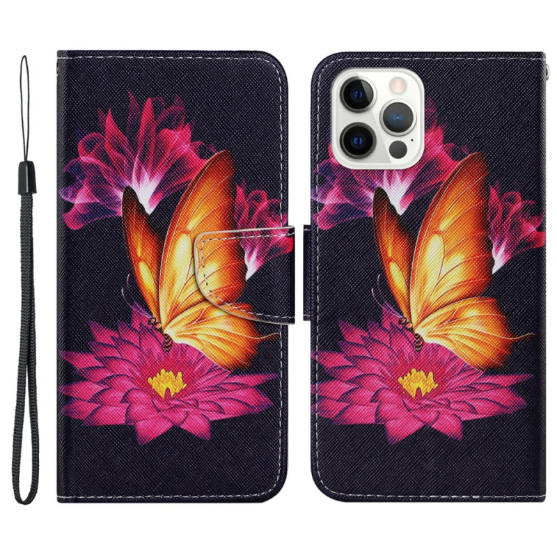 Proteja o seu iPhone 13 Pro Max com estilo com esta sofisticada capa para carteira com motivos de borboletas e flores. Inclui práticas ranhuras para cartões, uma correia de pulso segura e um suporte integrado para visualização em mãos-livres.
