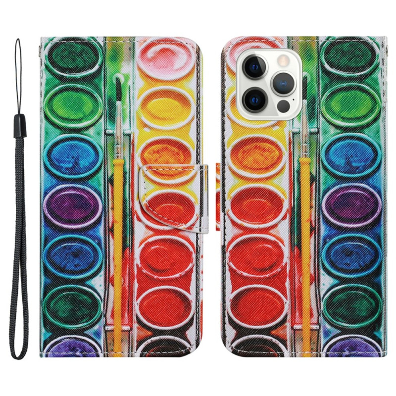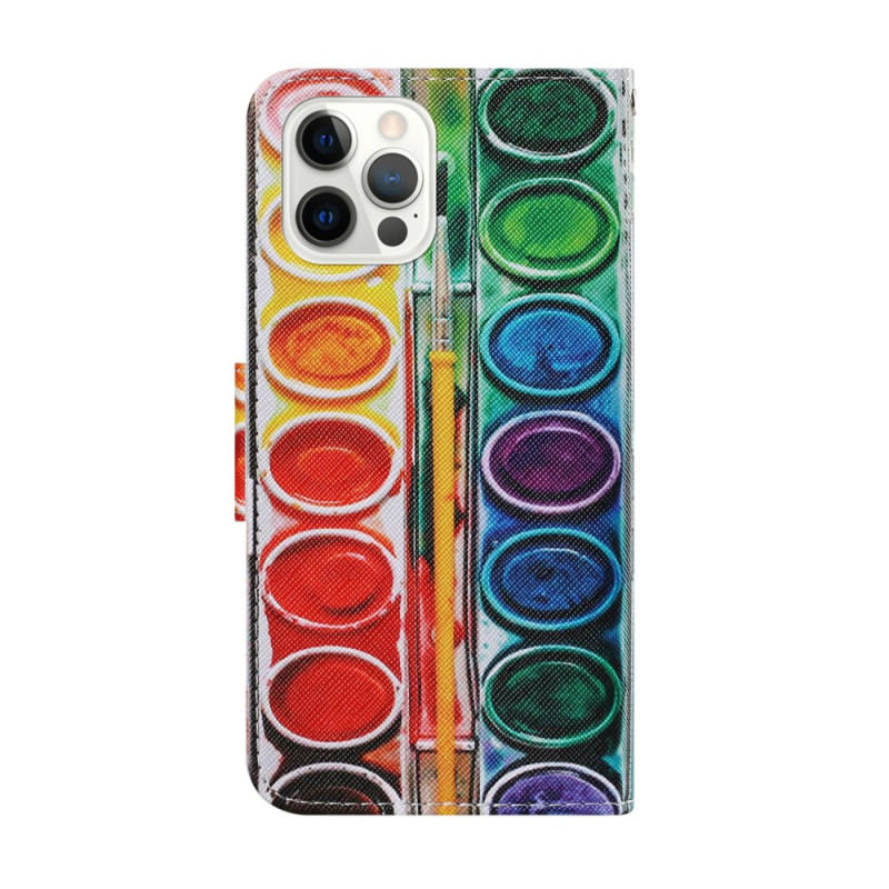 Proteja o seu iPhone 13 Pro Max com estilo com esta capa para carteira com um design artístico em paleta. Com práticas ranhuras para cartões, uma alça de ombro amovível e um suporte integrado, combina funcionalidade e estilo para uma utilização diária.