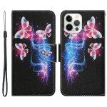 Proteja o seu iPhone 13 Pro Max com estilo com esta capa para carteira com um encantador motivo de borboleta cor-de-rosa. Com práticas ranhuras para cartões, uma correia de pulso segura e um suporte integrado, este acessório combina estilo e funcionalidade para uma utilização quotidiana.